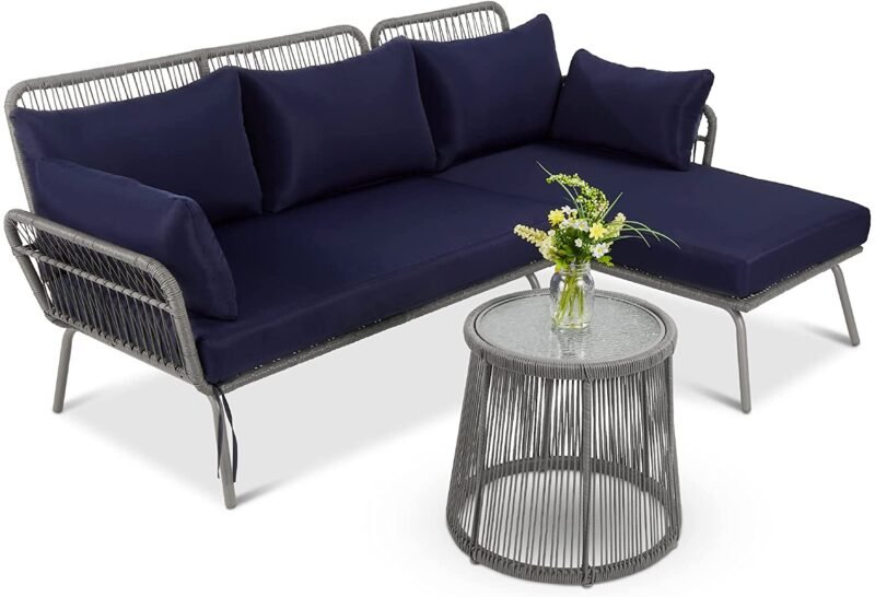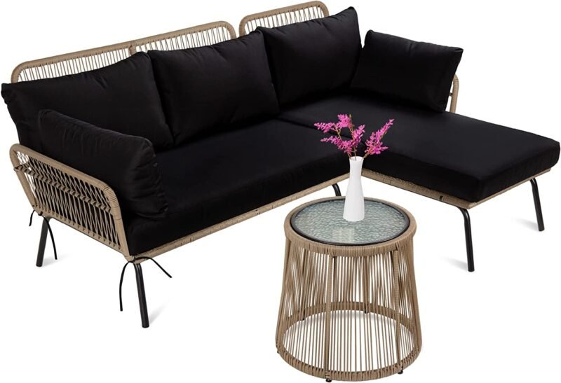QUALITY MATERIALS: Designed with a sturdy steel frame, beautiful handwoven wicker, and topped with comfortable, all-weather cushions for long-lasting use