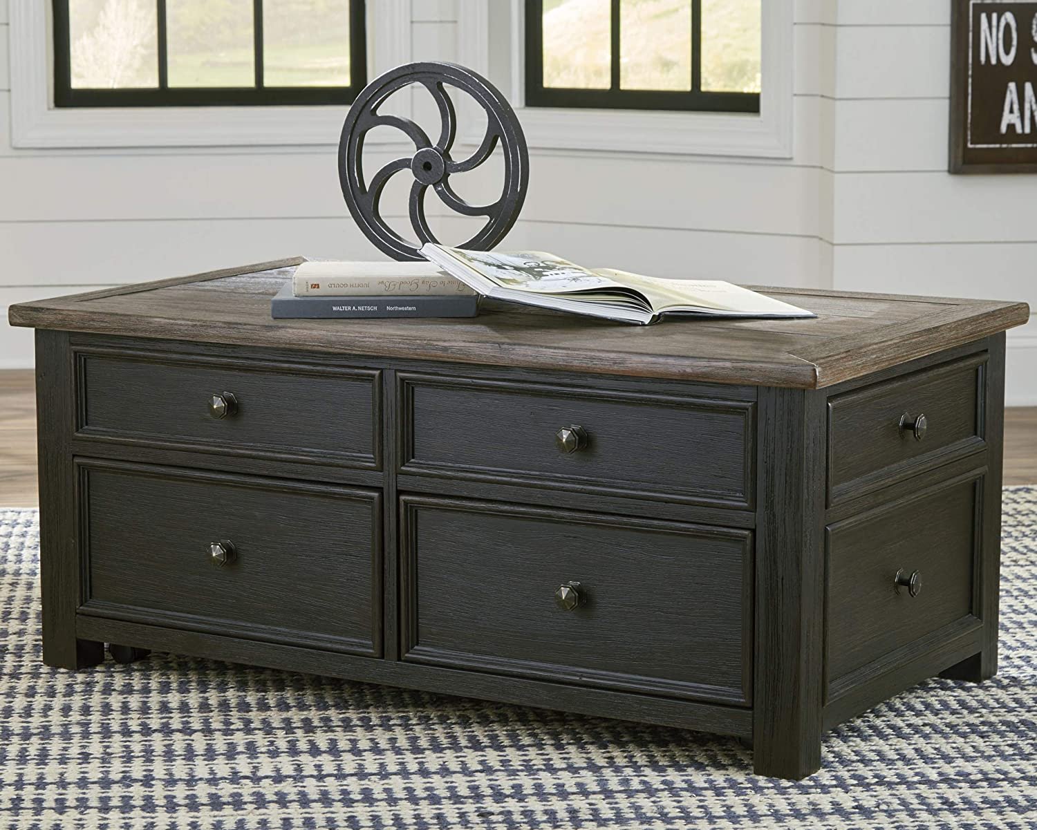 VERSATILE USE: The table’s spring lift top—perfect for impromptu meals and laptop work—and smooth-gliding storage drawers make it a handy solution for small or large living room spaces
