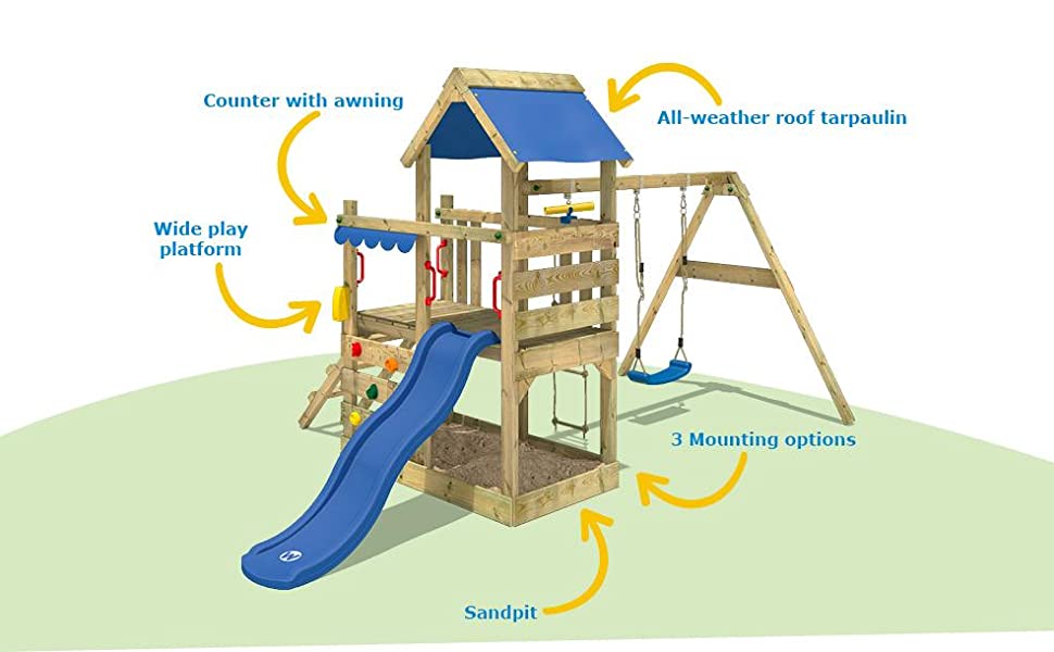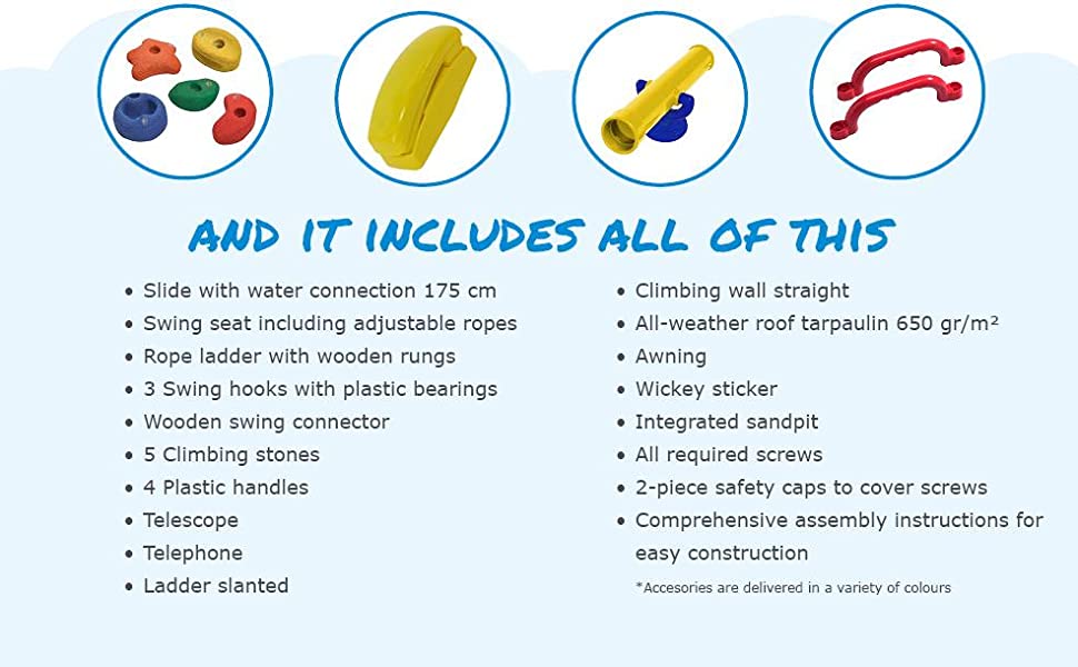 🤩Complete accessory set with swing, slide, climbing wall and sandbox.