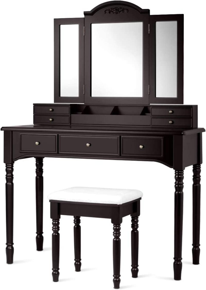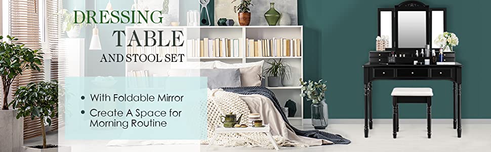 🌼【Easy to Assemble and Clean】: This makeup dressing set is very convenient to assemble in short time by yourself even you are a female according to instruction. With smooth, flat and glossy surface, the dresser set can be cleaned up with damp or dry cloth.