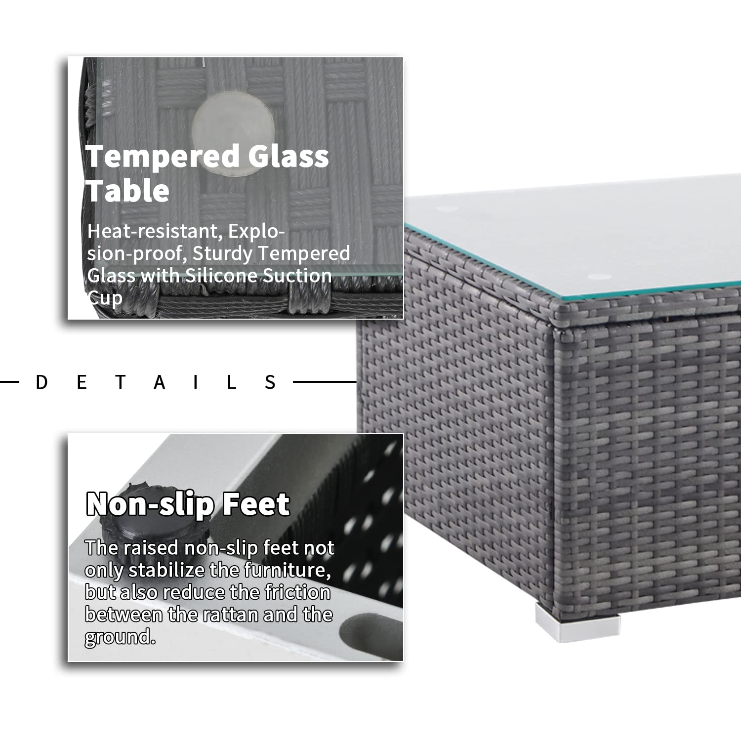 【Multiple Combinations】This outdoor combination rattan sofa set includes, 2 corner chairs, 4 armless chairs, and 1 glass coffee table. It can be combined into any look you want to meet your various combination needs and adapt to various scenarios.