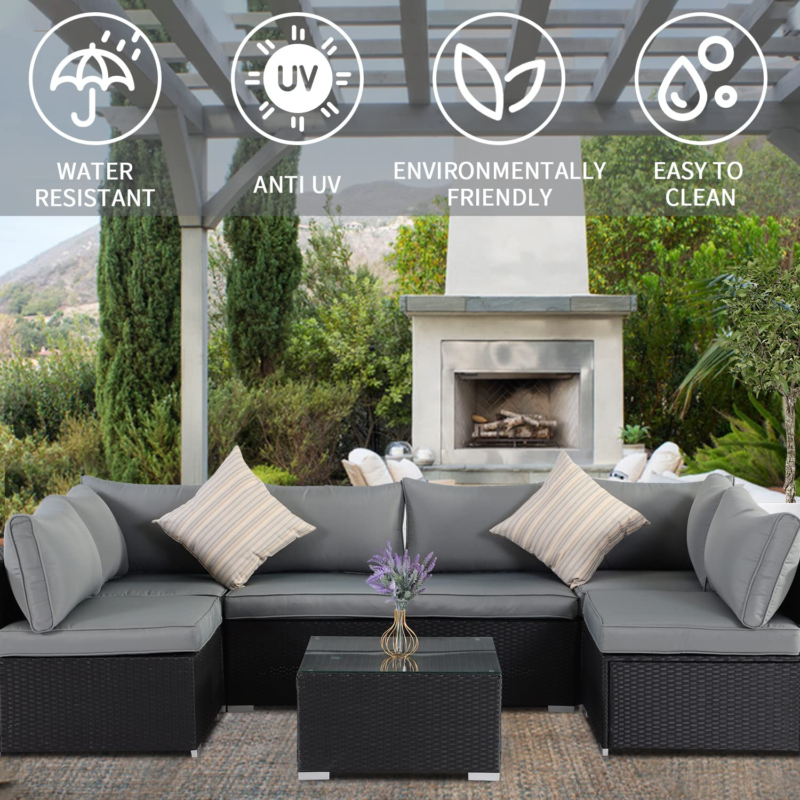 【Modern Design】The modern-style design of outdoor modular sofas, it has a high-quality cushion that is more comfortable than other sofas, has a better rebound effect, and does not deform after sitting for a long time., can not only decorate the courtyard, but also give you a very comfortable experience. It can be used to entertain guests and enjoy a good leisure time throughout the year.