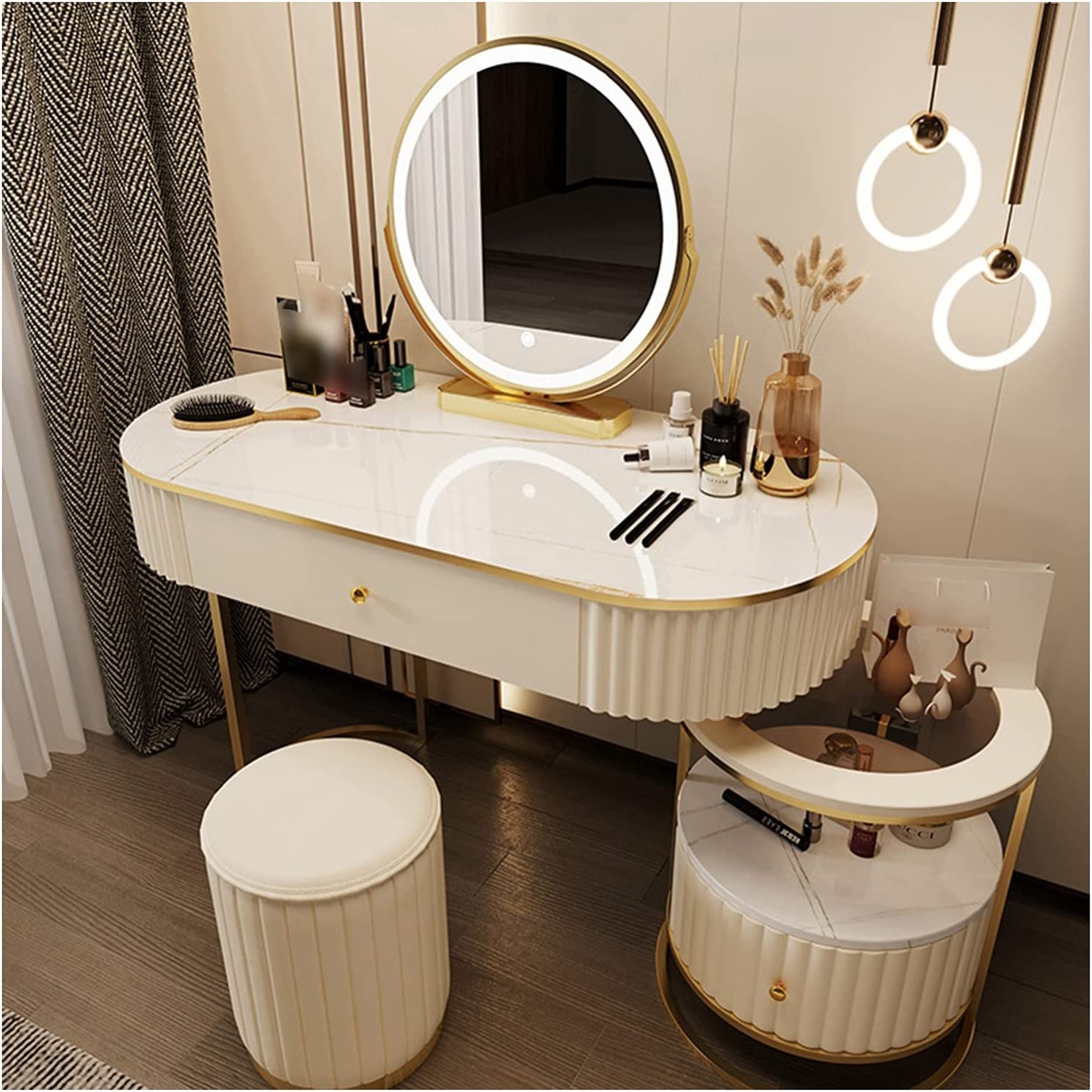 [Easy Assembly] Vanity makeup set includes vanity table, mirror with 3-color lights, cabinet and cushioned stool. According to the installation instructions of Vanity Desktop, it can be installed quickly, which is very convenient and brings the fun of installing by yourself.