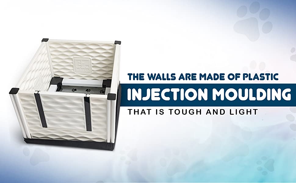 QUALITY PLASTIC BUILD: The walls of our indoor dog whelping box are made of plastic injection moulding which is extremely tough and durable, but also light enough to be portable. The walls are connected with a very high-strength extruded plastic post that is tall enough to keep puppies from escaping, but still allows you to attend to the puppies easily. Under normal use, our whelping box will serve for multiple litters unlike a disposable whelping box and be part of your puppy essentials!
