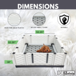 DOGS LOVE IT: Don’t keep your doggie in a kennel, dog cage, doghouse, or fence that will make them uncomfortable. This lovely plastic box enclosure can function as a dog playpen for small dogs or medium dogs, and it’s even big enough for a large dog. It has enough extra room for your dog and puppy accessories and other puppy stuff. We create our products with your pet’s happiness in mind! The interior dimensions of the whelping box are 48″ x 48″ while the exterior dimensions are 51.25″ x 51.25″
