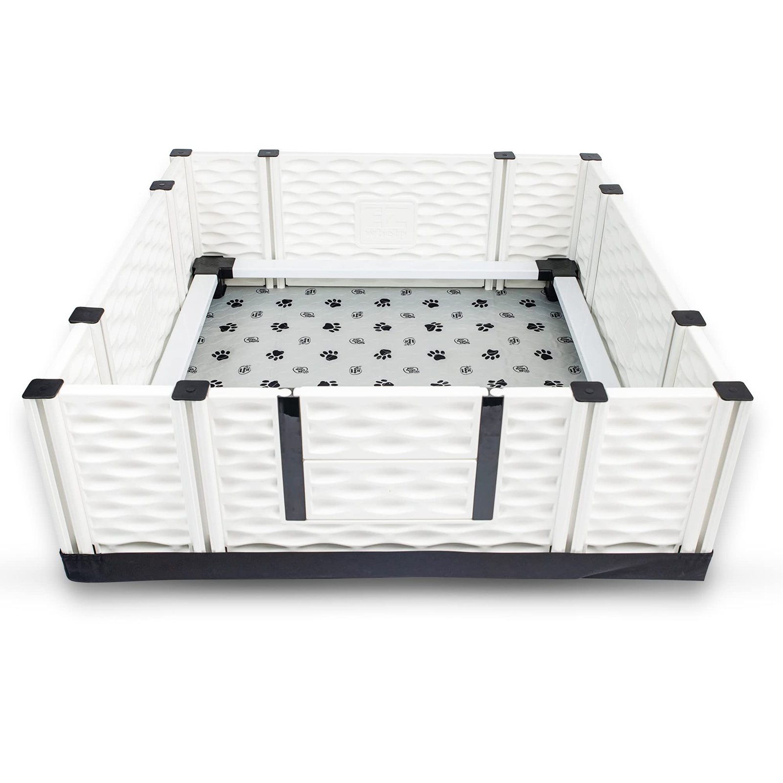 QUALITY PLASTIC BUILD: The walls of our indoor dog whelping box are made of plastic injection moulding which is extremely tough and durable, but also light enough to be portable. The walls are connected with a very high-strength extruded plastic post that is tall enough to keep puppies from escaping, but still allows you to attend to the puppies easily. Under normal use, our whelping box will serve for multiple litters unlike a disposable whelping box and be part of your puppy essentials!