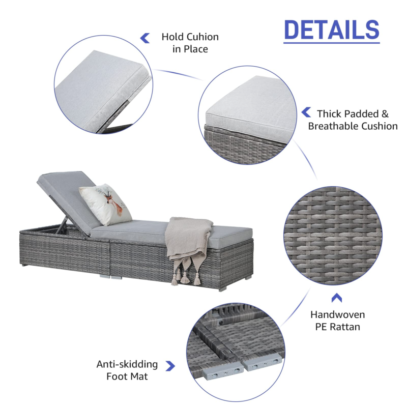 ※[Adjustable Leveler & Backrest]: Upgrading from plastic feet to adjustable leveler makes it easy to adjust the height to maintain balance of all the sofa, ottoman and table. Lounge out in the sun, getting your tan back on with this Sunbathing chaise lounge. The ergonomic design and padded sling seat provides maximum comfort with 6 adjustable back positions. including fully reclined.