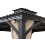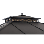 Instantly create an outdoor gathering spot for family and friends away from the glaring sun and pesky insects. This 10.5 ft. x 12.5 ft. 2-tier, vented hardtop gazebo by the world’s leading ready-to-assemble outdoor structure maker, Sunjoy, creates the perfect outdoor setting for any time of the year. The 2-tier roof provides just the right amount of airflow while keeping occasional inclement weather at bay. Keep cool in the shade under the rust-resistant powder-coated steel structure. Use the mesh netting to keep mosquitoes and other bugs from joining your group. Set the mood by suspending a chandelier from the incorporated ceiling hook for functional light and high design. With straight-forward, easy-to-follow assembly instructions you’ll be relaxing in your favorite new outdoor living space for years to come.