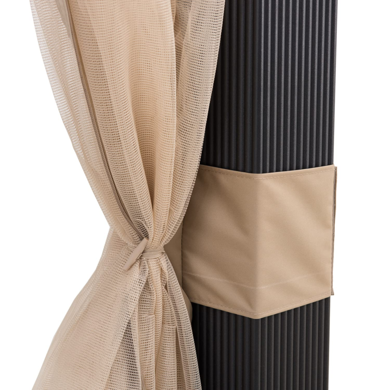 Stability, Protection & Privacy: Durable, rust-resistant, black powder-coated steel roof and frame provide shade from the sun and keeps the water out. Dual rail system included to suspend mosquito netting and privacy curtains.