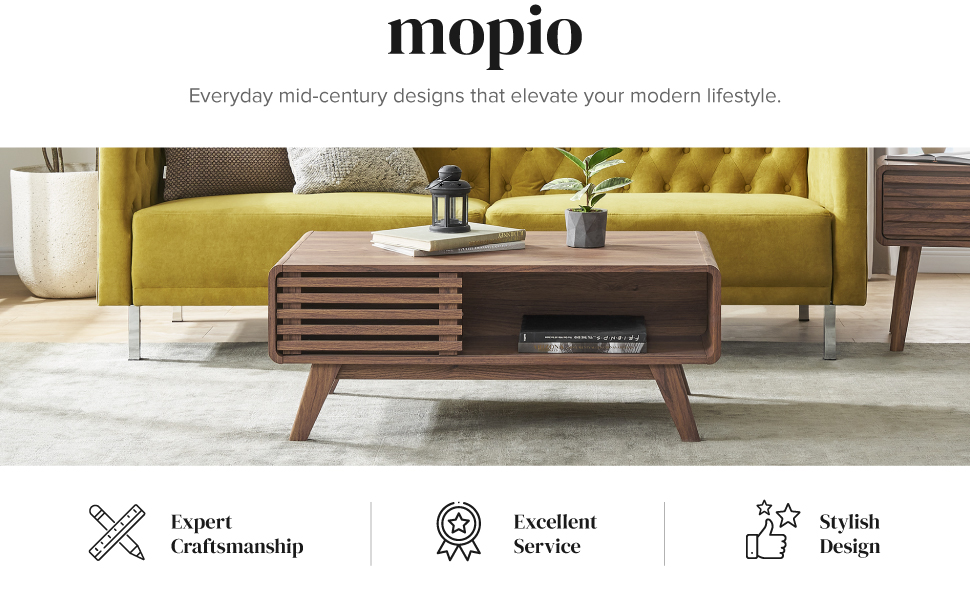 Design: Mid-Century Modern coffee table with 4 separate compartments for your storage needs. The perfect centerpiece for your living room. Ensley Side Tables also comes with a slatted design with smooth sliding drawers