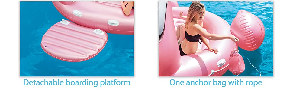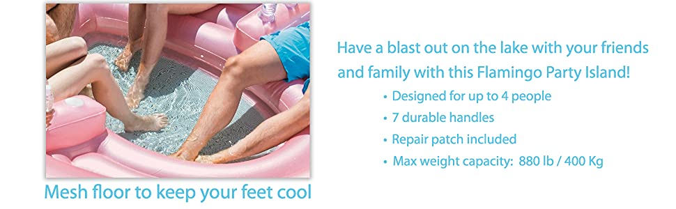 The mesh lounging area and detachable boarding platform make it simple to cool off in the water. 7 heavy duty handles make it easier to get out