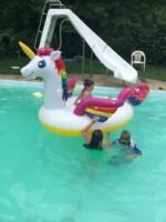The mesh lounging area and detachable boarding platform make it simple to cool off in the water. 7 heavy duty handles make it easier to get out