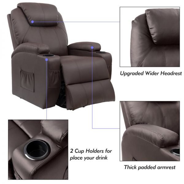Faux Leather Power Reclining Heated Massage Chair