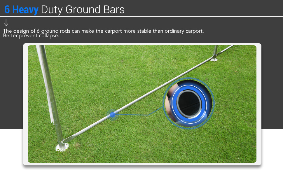 【HEAVY DUTY GALVANISED FRAME】- UPGRADED heavy duty 1-1/2inch (Dia.) galvanised rust resistant steel metal frame and thickened 1.65inch (Dia.) connectors, provides whole frame increased stability. galvanizing process protect steel pipe surface from chipping, peeling, rust and corrosion.The additional 6 ground poles make the tent more sturdy, greatly improving the use in bad weather.