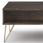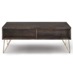 Style and convenience are at work in this uniquely functional Hunter Lift-Top Coffee Table. The top lifts up to reveal hidden storage, pulling toward you for the perfect surface to type on your laptop or eat in front of the television. The table features two open compartments for stacking books or displaying decorative objects. Hairpin legs along with Mango Wood add an industrial component.