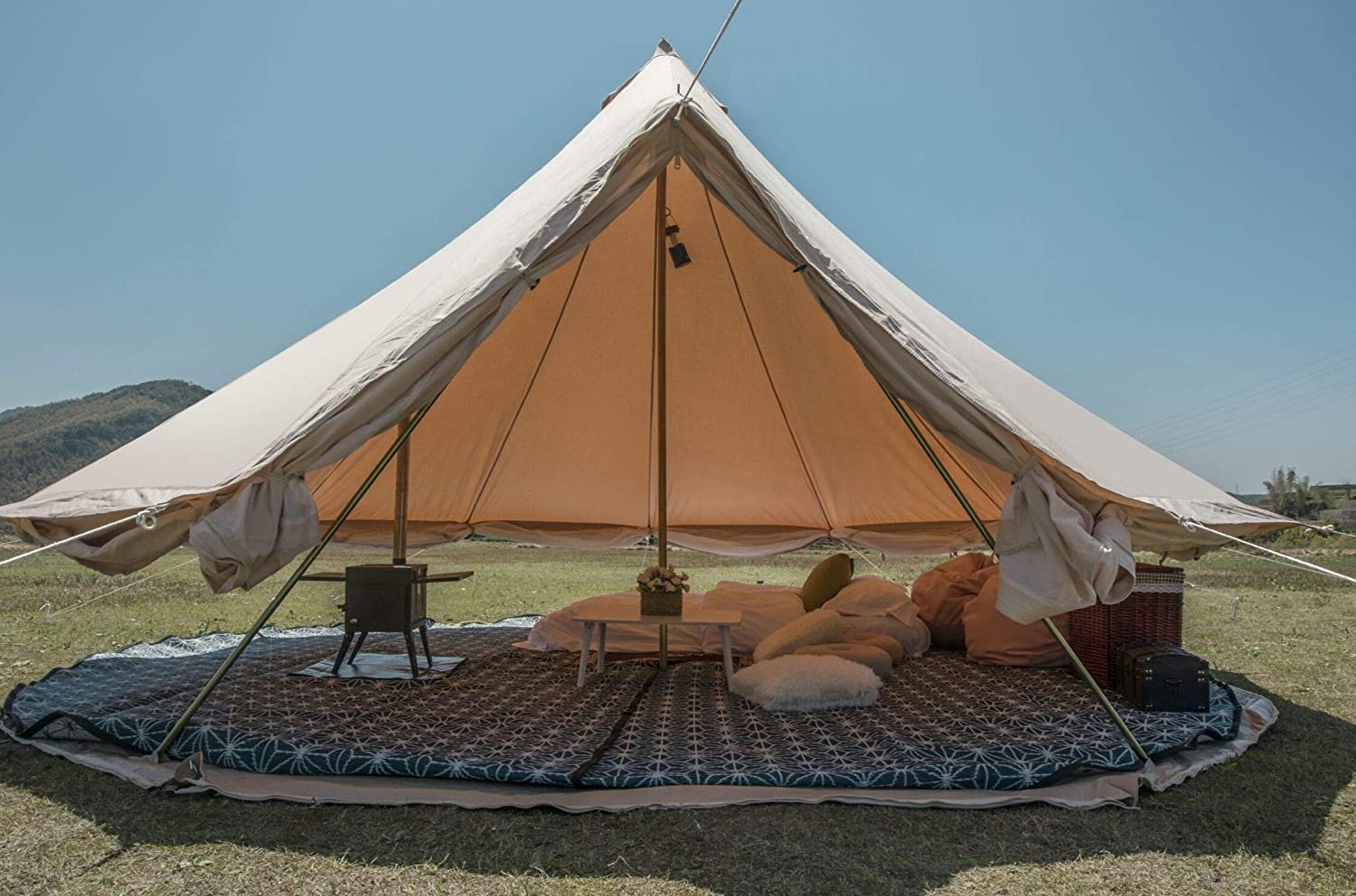 100% COTTON CANVAS:glamcamp Bell Tents use durable and breathable 100% cotton canvas-water Repellent,UV Resistant;All our seams are double stitched,reinforced for the corners.