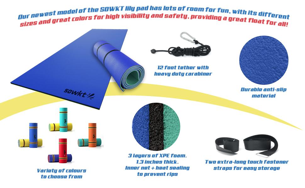 FUN AND SAFETY: Our newest model of the SOWKT water mats for the lake have lots of room for fun with its 18×6 ft size, and great colors for high visibility and safety. Perfect floating pad for adults and kids! These lake floats hold up to 1320 lbs.
