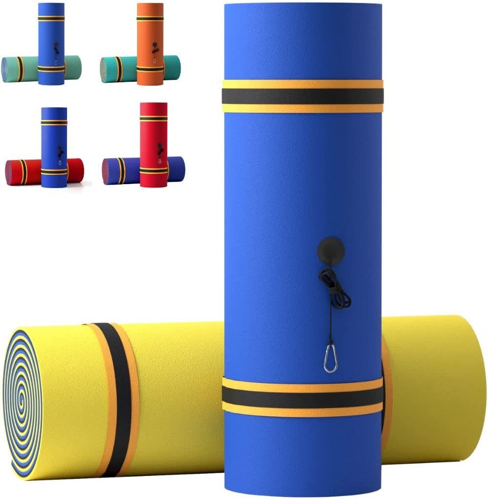 DURABILITY & STORAGE: 1.3 inches thick and made with High-Quality XPE foam. We developed a proprietary inner net + heat sealing to ensure the lake mat float’s high durability. Weight: 28 lbs. When rolled-up tightly: 6 ft long and ~21 in diameter.