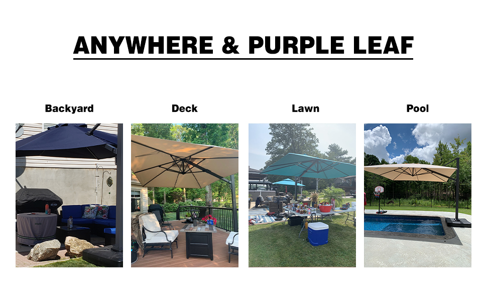 - Relax in the shade on your deck, patio, or poolside lounge area with this cantilever umbrella from PURPLE LEAF.