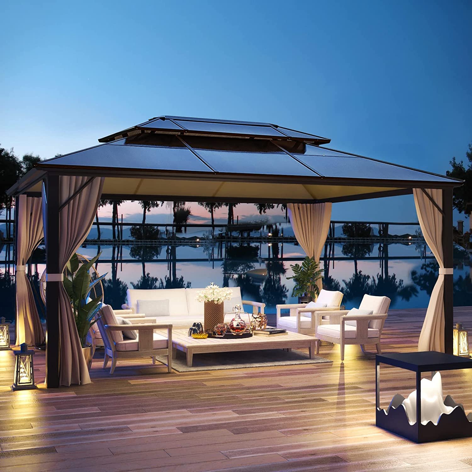 🌞【Intimate Hook Design】: There are two solid hooks on the top of our hardtop terrace. You can easily hang lamps or fans or hanging heaters according to the change of season and your own needs to make the gazebo be more comfortable to use.