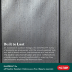 This stylish shed features two windows and a full width skylight for plenty of natural light and two window boxes for a decorative touch that will blend in with your house and landscaping. Oakland 11×7.5 is weather-resistant, requires no maintenance and will last for years thanks to its strong and rugged DUOTECH wall panels.