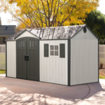 With various features including shatterproof windows, skylights, custom shelving and more, a Lifetime Shed is the perfect aWith the Lifetime 8′ x 12.5′ Outdoor Storage Shed, your outdoor space will go from drab to fab, offering a dose of style as well as an immense amount of storage to spruce up the yard and more. This durable steel-reinforced shed offers plenty of space for outdoor gear. Interior shelving makes organization easy, while its lockable doors provide security.ddition to your backyard.