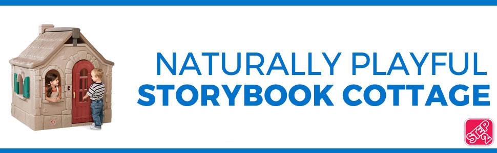 Molded-in stonework, thatched roof, and other details add to the forest-cottage theme.