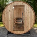 A:”A licensed electrician is required to install the heater, yes. The barrel saunas will do fine outdoors, but you may seal or stain the exterior only with a UV inhibiting and water-based product to preserve the wood long term. Some will cover their saunas if you live in a very rainy/snowy area with a rain barrel jacket, corrugated tin, or shingled roof.”