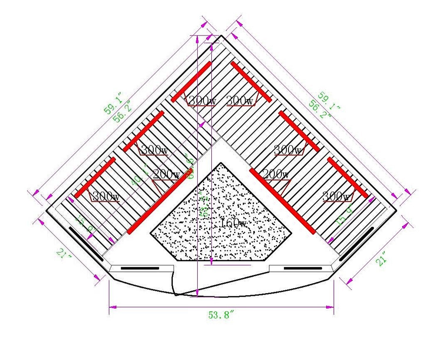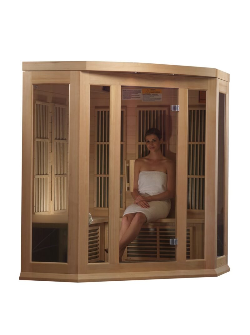 These Saunas are constructed with the environment in mind which accounts for the efforts in using Reforested Canadian Hemlock wood. The walls are double paneled and constructed with the thickest interior and exterior wood planks compared to others in the same industry. This all translates to a quality sauna that retains heat more efficiently, heats up faster, and wastes less energy. The FAR infrared Carbon Energy Efficient heating panels are 30% larger than saunas heated by ceramic tubes and penetrate skin 40% more to maximize therapeutic benefits. Unlike ceramic heaters, you will never have to replace the Carbon Energy Efficient heating panels. The Carbon Energy Efficient panels also heat up 30% faster than saunas equipped with ceramic panels and 100% faster than rock and water steam saunas. A 3-person sauna is designed for ease of use and is an outstanding value. Enjoy the convenience of operating your sauna with the dual (interior and exterior) soft-touch control panel and LED display featuring sauna temperature and time functions. This sauna is equipped with a reduced wattage floor and lower bench heater to allow the same benefits and treatment to your legs and feet without the burning sensation of other sauna manufacturers. Enjoy your sauna session with your favorite music through the sauna’s built-in FM radio and MP3 auxiliary connection with speakers. This sauna enhances your sauna experience with the bonus feature of the Chromotherapy (color therapy) lighting system. This sauna plugs into a dedicated 20 amp 110-volt outlet (please consult a certified electrician for replacing a 15 amp dedicated receptacle with an approved 20 amp dedicated receptacle and 20 amp breaker). This sauna may be installed on carpet and at any indoor location including the basement, master bath, or walk-in closet. Indoor use only.