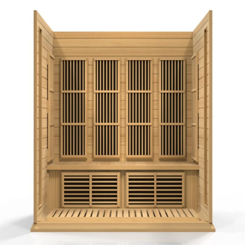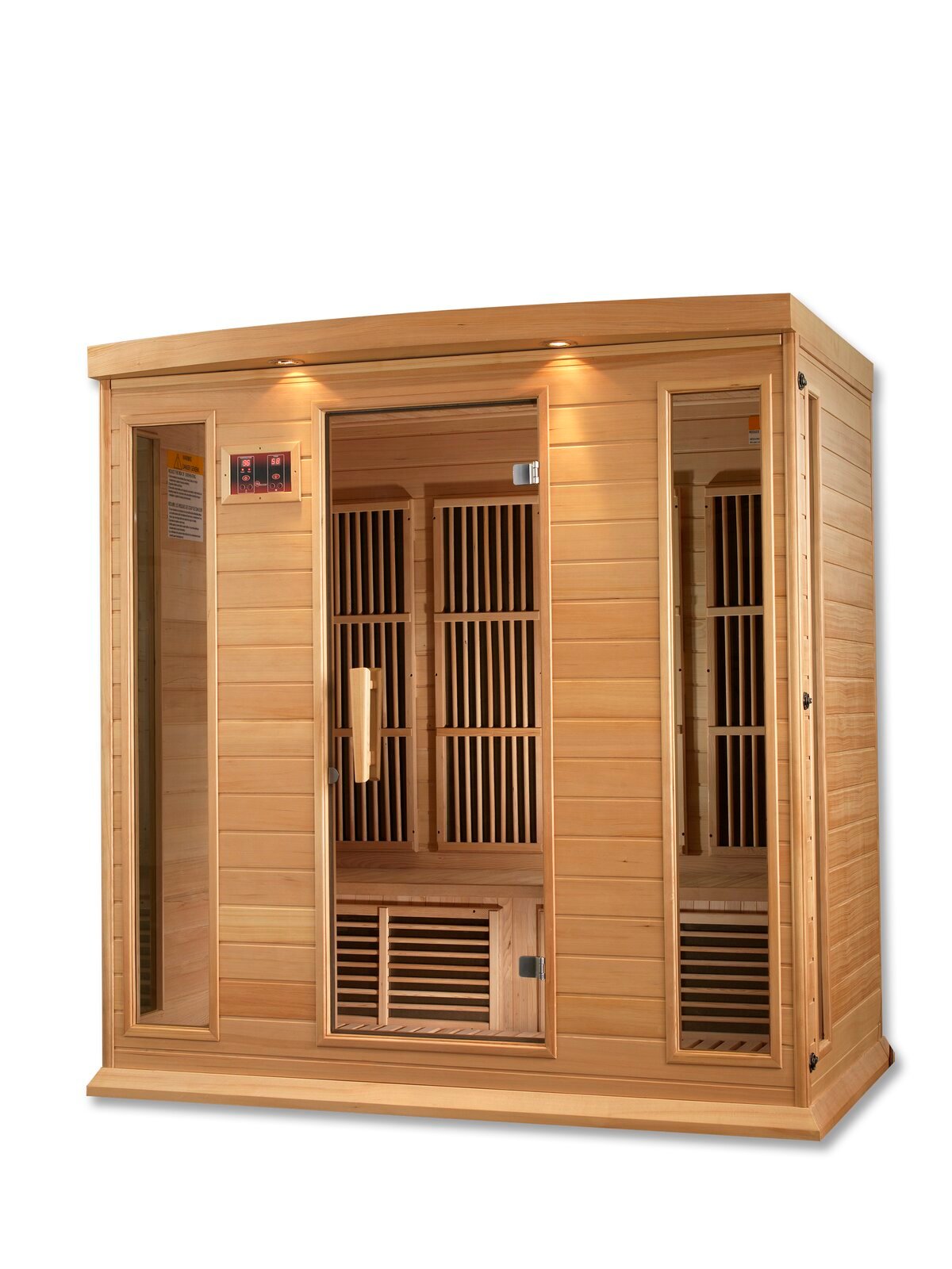 These saunas are constructed with the environment in mind which accounts for the efforts in using reforested Canadian hemlock wood. The walls are double paneled constructed with the thickest interior and exterior wood planks compared to others in the same industry. This all translates to a quality sauna that retains heat more efficiently, heats up faster and wastes less energy. The far infrared carbon energy efficient heating panels are 30% larger than saunas heated by ceramic tubes and penetrate skin 40% more to maximize therapeutic benefits. Unlike ceramic heaters, you will never have to replace the carbon energy efficient heating panels. The carbon energy-efficient panels also heat up 30% faster than saunas equipped with ceramic panels and 100% faster than rock and water steam saunas. 4-person sauna is designed for ease of use and is an outstanding value. Enjoy the convenience of operating your sauna with the dual (interior and exterior) soft-touch control panel and led display featuring sauna temperature and time functions. This sauna is equipped with a reduced wattage floor and lower bench heater to allow the same benefits and treatment to your legs and feet without the burning sensation of other sauna manufacturers. Enjoy your sauna session with your favorite music through the sauna’s built-in FM radio and mp3 auxiliary connection with speakers. This sauna enhances your sauna experience with the bonus feature of the chromotherapy (color therapy) lighting system. This sauna plugs into a dedicated 20 amp 110-volt outlet (please consult a certified electrician for replacing a 15 amp dedicated receptacle to an approved 20 amp dedicated receptacle and 20 amp breaker).