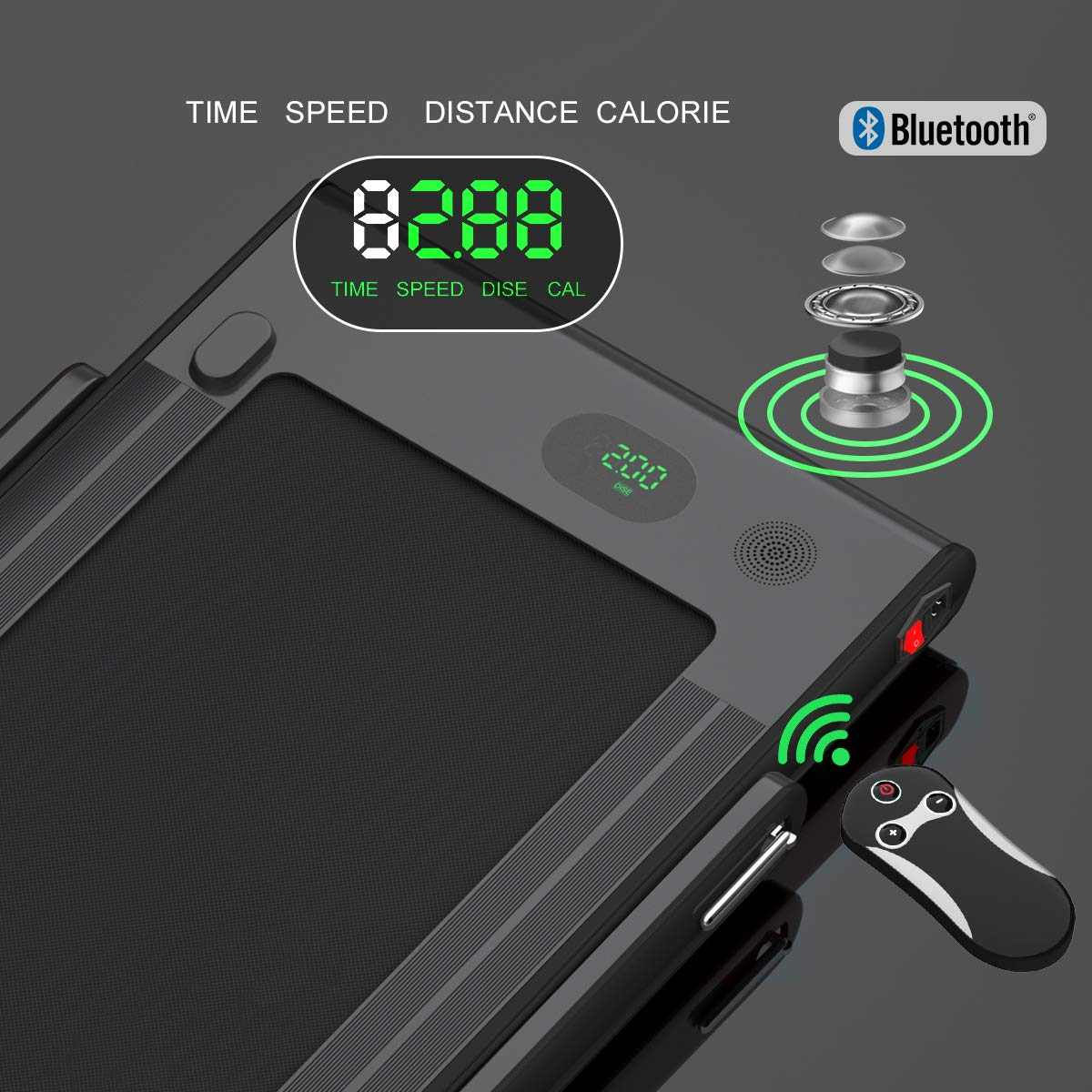 - WITH BLUETOOTH SPEAKER, PHONE HOLDER, REMOTE CONTROL & APP CONTROL — Connect the Superfit treadmill to your phone through Bluetooth, so you can play music while you are exercising. You can also use the phone holder to watch videos or chat with friends. The remote control (battery not included) is convenient to adjust the speed of movement and stop instantly. Smart APP control is perfect to record exercise data and running with other users.