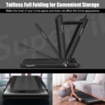 - EASY TO MOVE AND STORE — The compact, foldable design and built-in transport wheels make it easy to move and store this under desk treadmill to save space. And it’s out of the box and doesn’t need to be installed.(HANDLES NEED TO BE REMOVED BEFORE FOLDING)