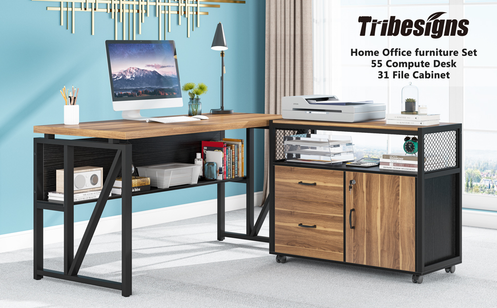 • 【Freestanding 2 piece Home Offices Furniture Set】: 55 inches computer desk and 32 inch filing cabinet, you will love the versatility of having 2 pieces that can be put together for an l-shaped desk to extend your workspace or separate for a different look.