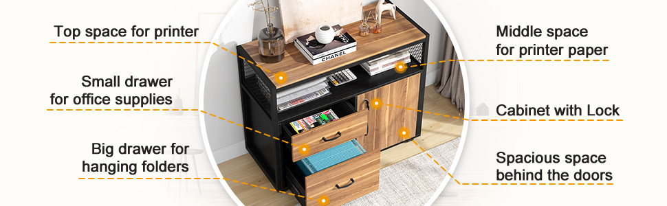 • 【32 “ lateral filing cabinet】:Mobile office storage cabinet 32 “X16”X30”(L *W*H) a separate secondary work surface on the return provides further space to work or a perfect place for your printer, Or scanner, a smaller drawer for office stuff a larger drawer for hanging letter size filing folders. A large concealed space behind for something relatively big.The cabient with lock to store the important things