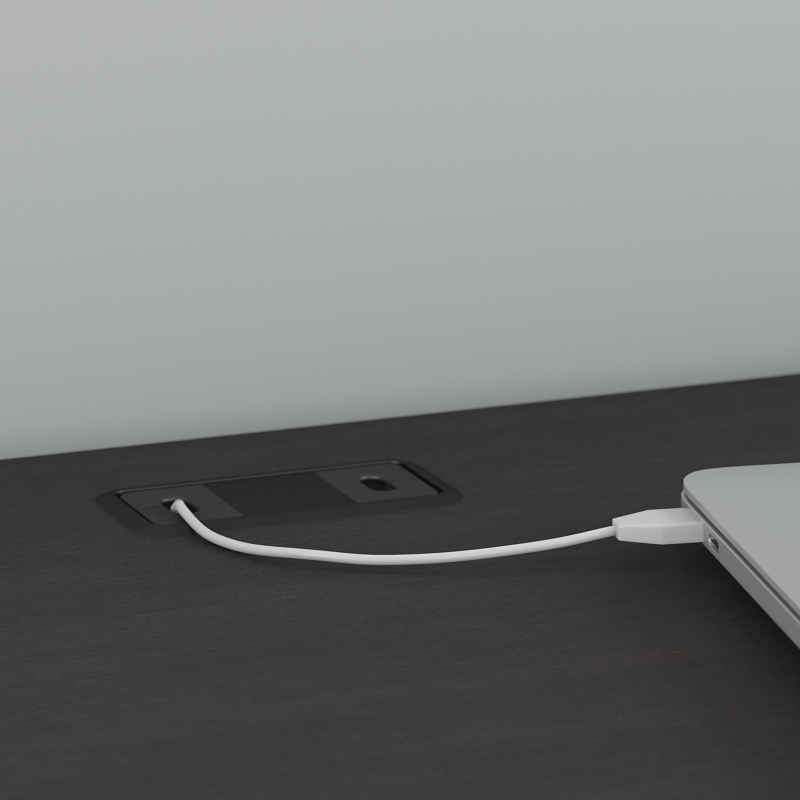 - Pull-out shelf stores your keyboard or laptop