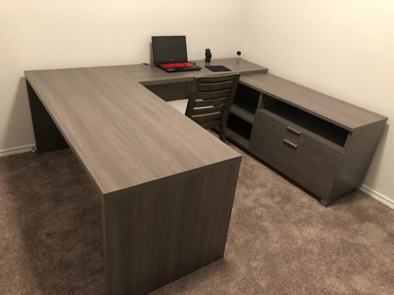 - The Credenza is made of a durable 1″ commercial grade work surface with melamine finish
