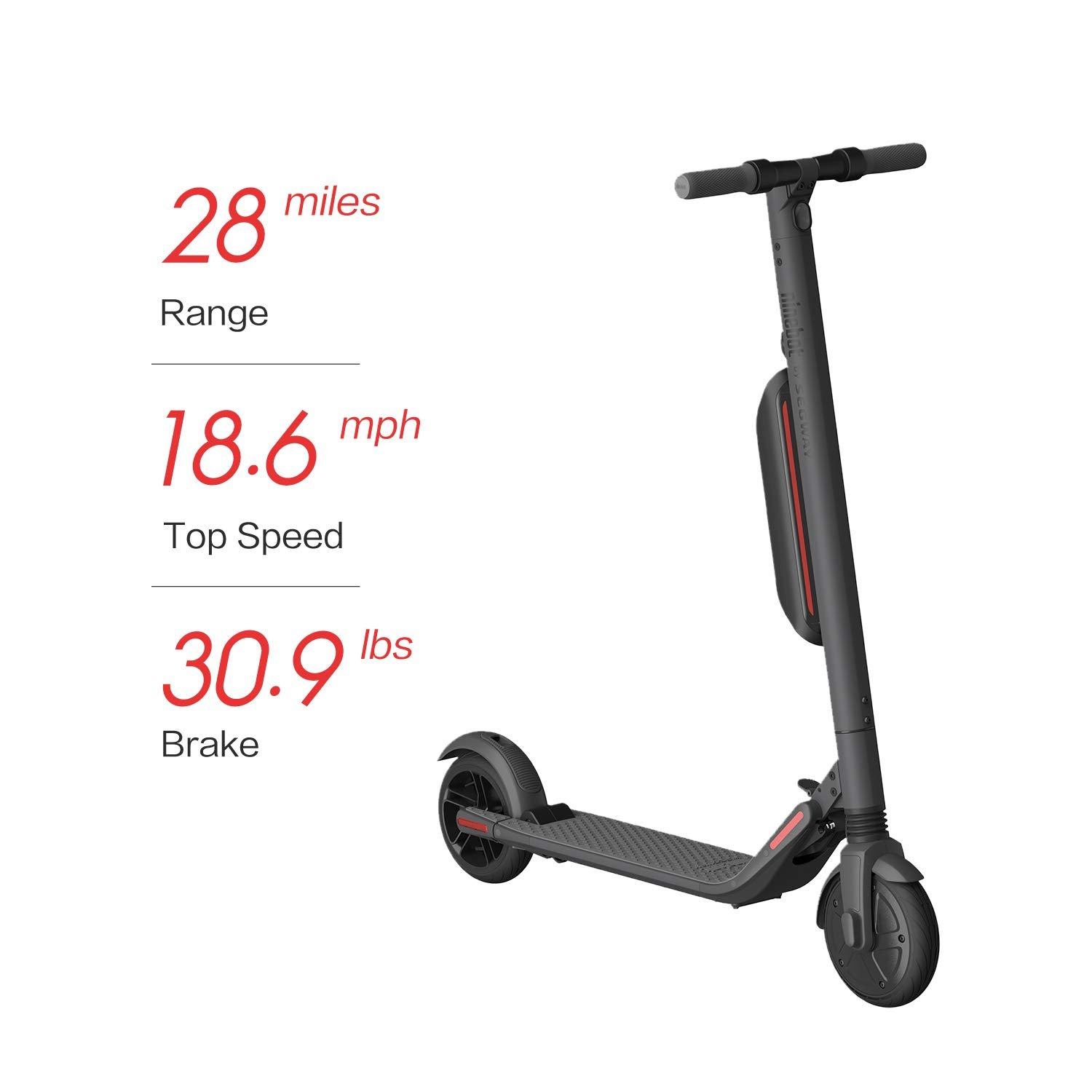 Dual Batteries: With an extra Lithium Ion battery and upgraded motor, ES4 boasts up to 800W of power, with a top-speed of 19 mph, travel up to 28 miles and accommodate a max load of 220 lbs. The ES4 can take you just about anywhere you want to go.