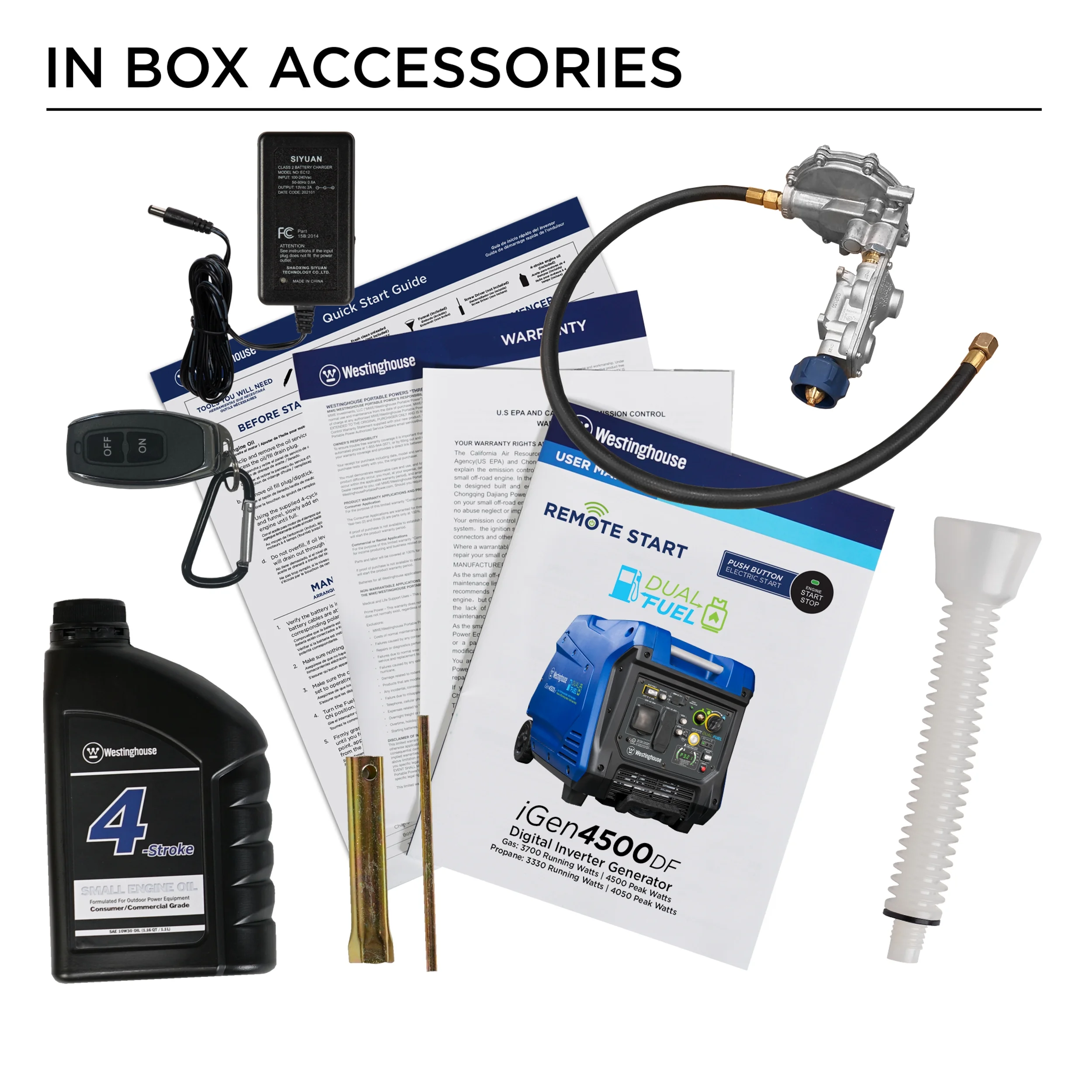 - All Westinghouse portable generators are functionally tested in the factory and may contain minimum residual oil and/or fuel odor