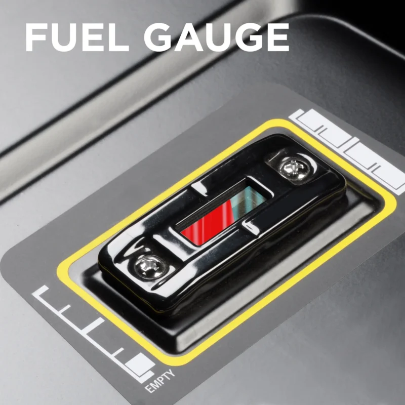 - Runs for up to 12 hours on a 6.6 gal. fuel tank with built-in fuel gauge; up to 7 hours on a 20 lb. propane tank